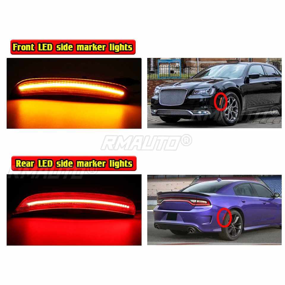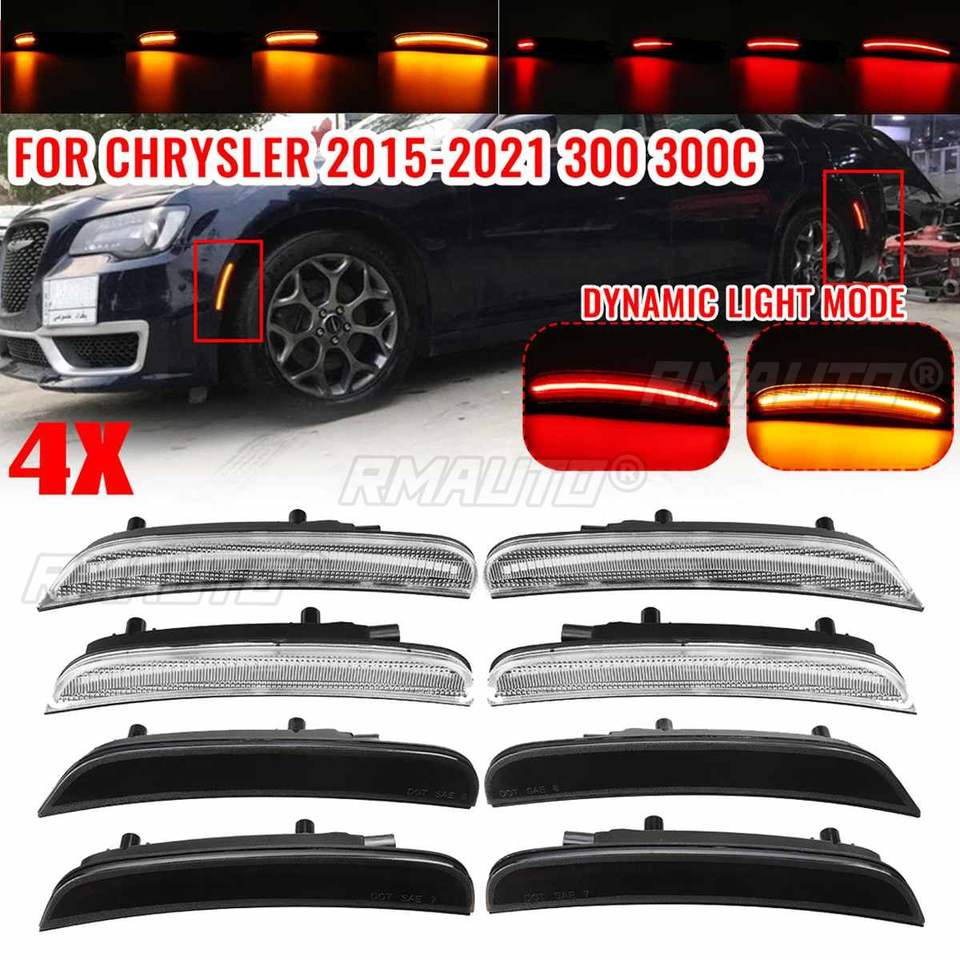 4 pièces, feux de position latéraux dynamiques avant et arrière, rouge ambre, LED, clignotants, feux de signalisation pour Chrysler 300 2015 2016 2017 2018