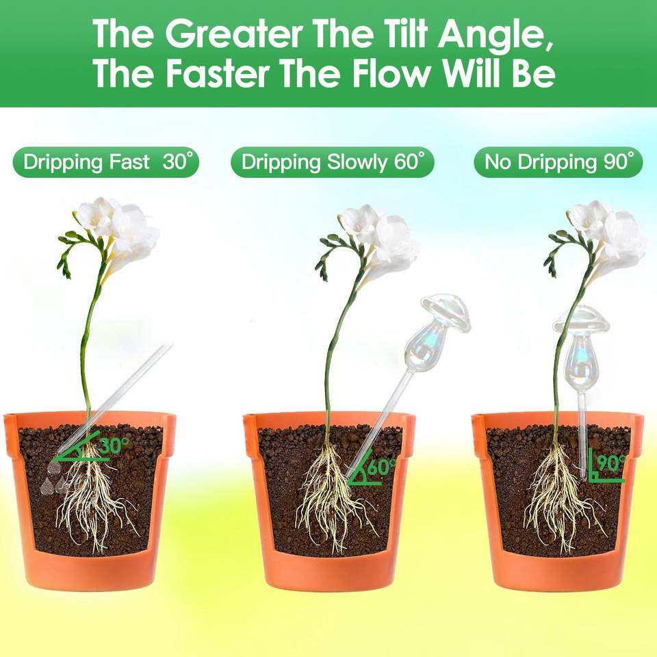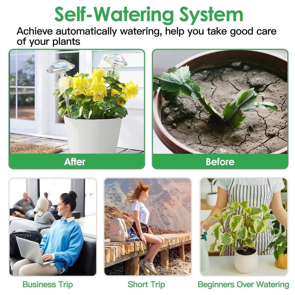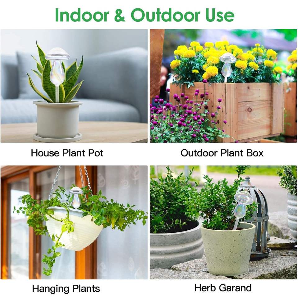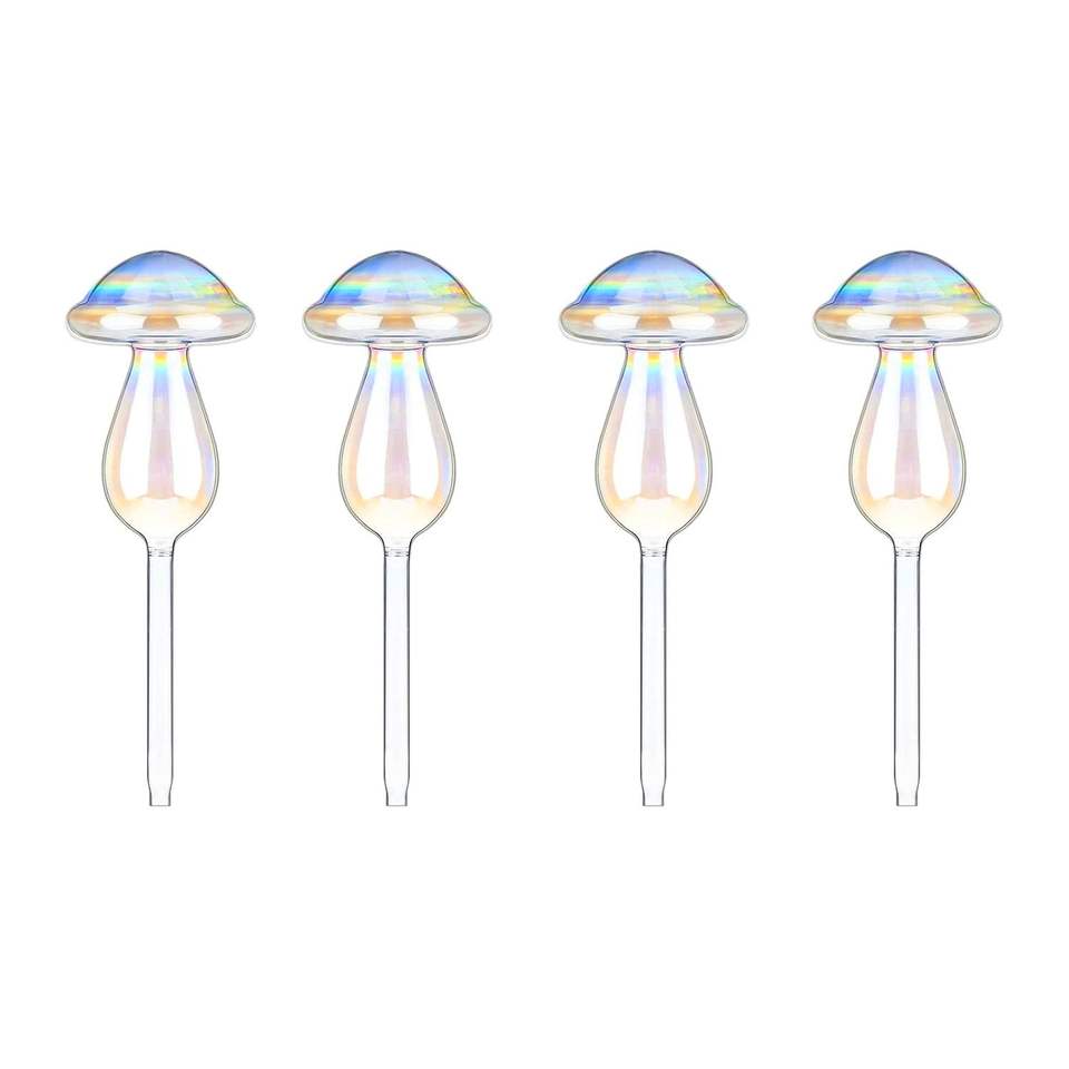 4 globes d'arrosage automatiques en verre transparent dégradé arc-en-ciel irisé, style champignon, pour plantes et pots de fleurs