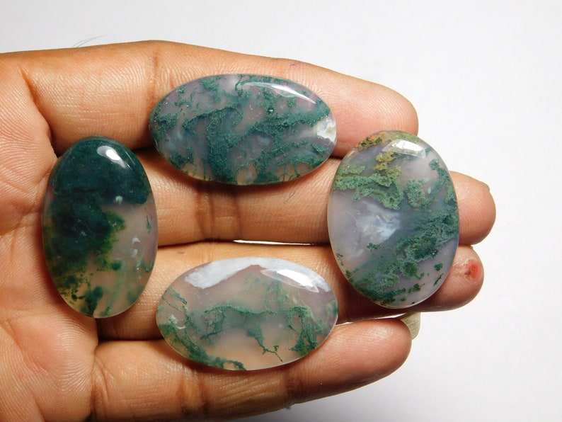 4pcs Moss Agate Cabochon Lot Naturel Véritable Pierres Précieuses Lâches 120Cts pour la Fabrication de Bijoux