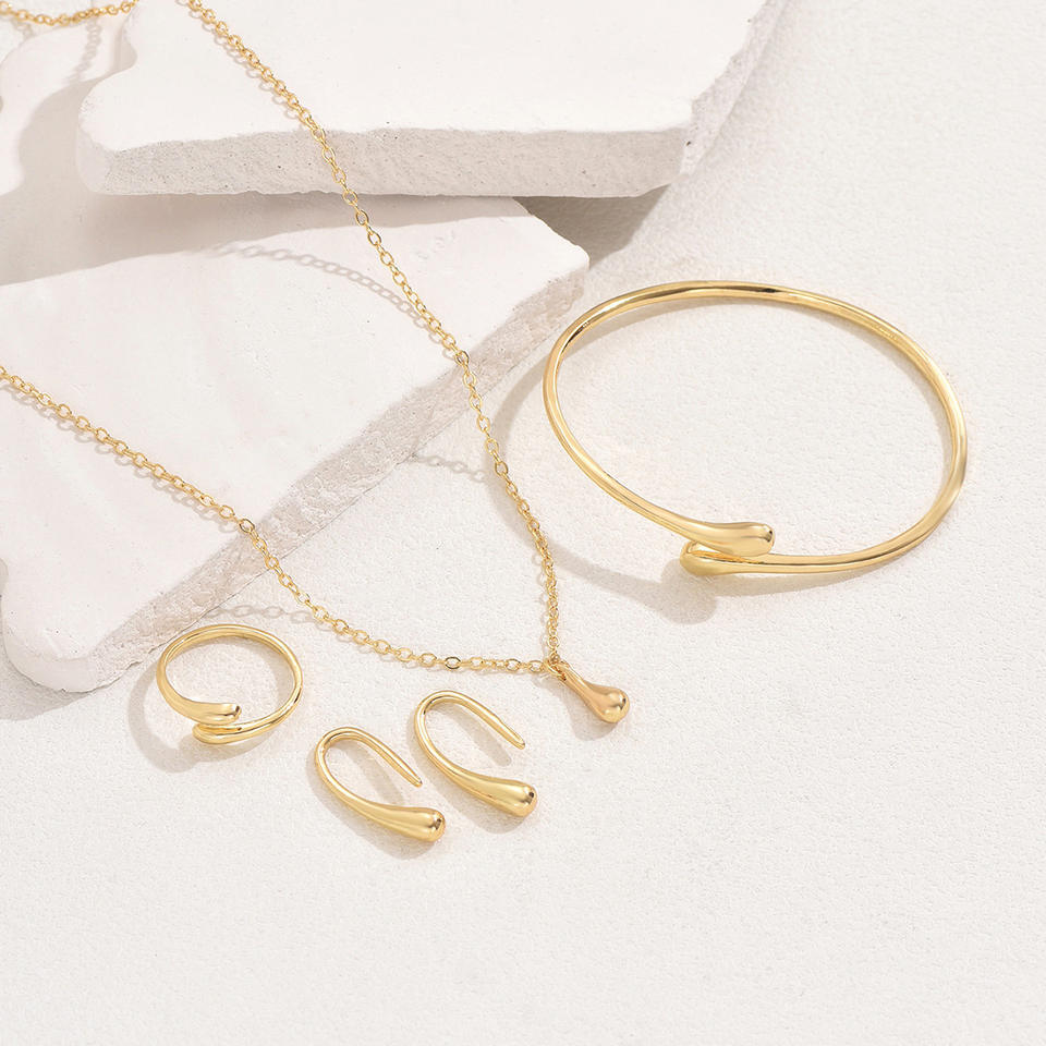4 pièces/ensemble ensemble de bijoux mode Simple goutte conception réglable anneau ouvert Bracelet boucles d'oreilles collier ensemble