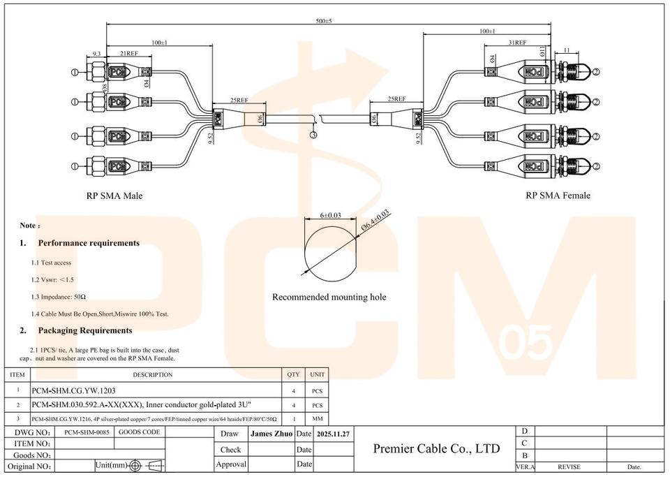 Nom du produit:Câble d'antenne externe à panneau MIMO 4x4 RP-SMA mâle vers RP-SMA femelle