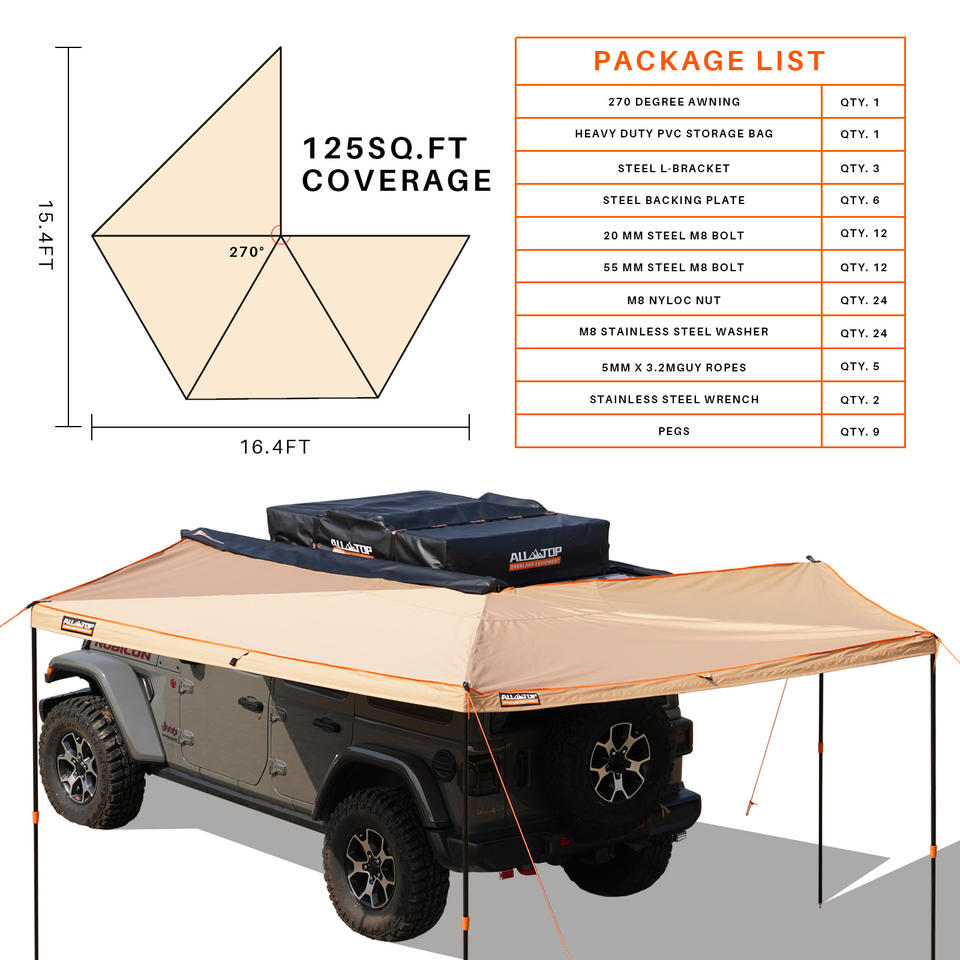 Kit de montage universel pour véhicule tout-terrain 4x4 inclus, auvent de voiture latéral, auvent de voiture 270 degrés pour le soleil/la pluie/la neige