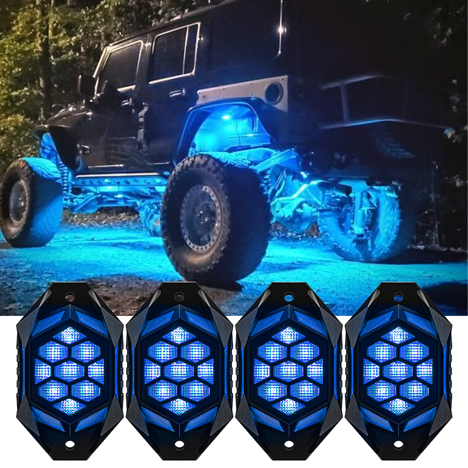 4x4 Rgb 12v 24v 8 Pods Rgb Utv Luces Para Camion Accessoires De Voiture 45w Underglow Led Rocklights RGBW pour OffRoad Suv Atv SUV Camion