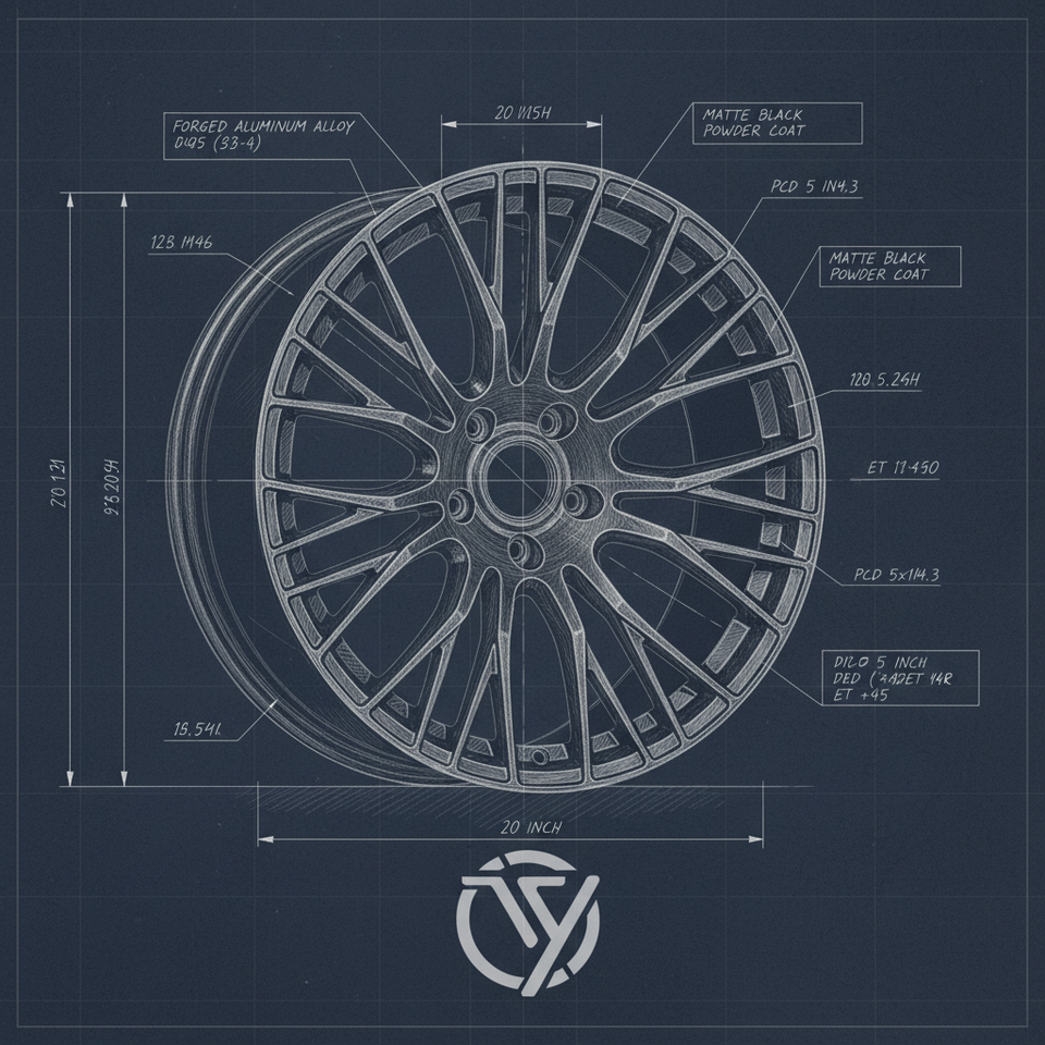 Jantes 4x4 sur mesure en aluminium forgé noir mat, design multi-branches pour Audi, BMW, Mercedes, Lexus