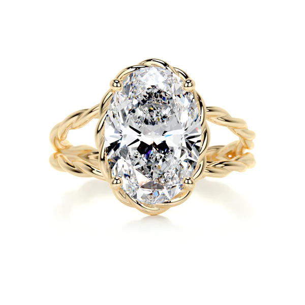 Bague de fiançailles solitaire en or rose avec diamant ovale de 5,0 carats cultivé en laboratoire, diamant CVD couleur F, clarté VS, certifié IGI, style bohème