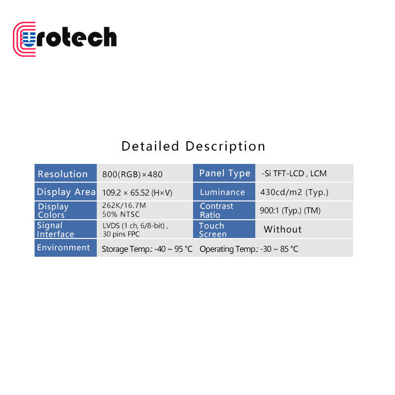 Interface:LVDS (1 ch, 6/8 bits) , 30 broches FPC