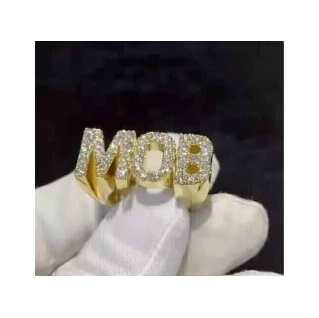 5.00 Carat Hip Hop Round Cut VVS Moissanite Yellow Gold Plated Wedding Letter Ring For Men's 925 Sterling Silver