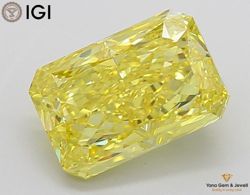Diamant de 5,07 carats, forme Radiant, certificat IGI, cultivé en laboratoire CVD, couleur jaune vif fantaisie, clarté VVS2, pour un centre de table étincelant