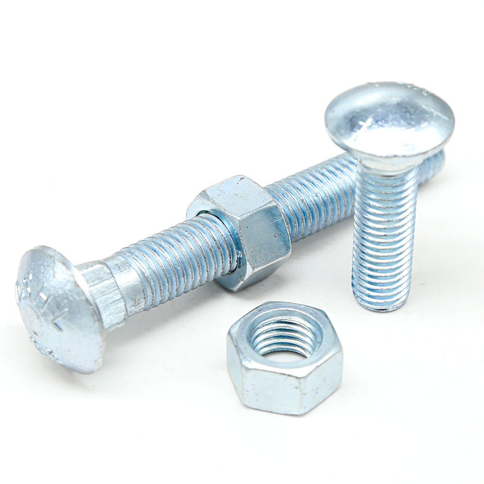 5/16x1.1/2 Grade 2 Surface zinguée blanche DIN603 A2 boulons d'entraîneur en acier inoxydable tête de coupe avec écrou