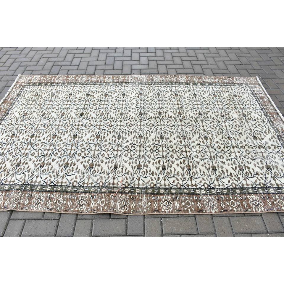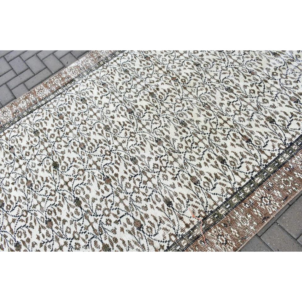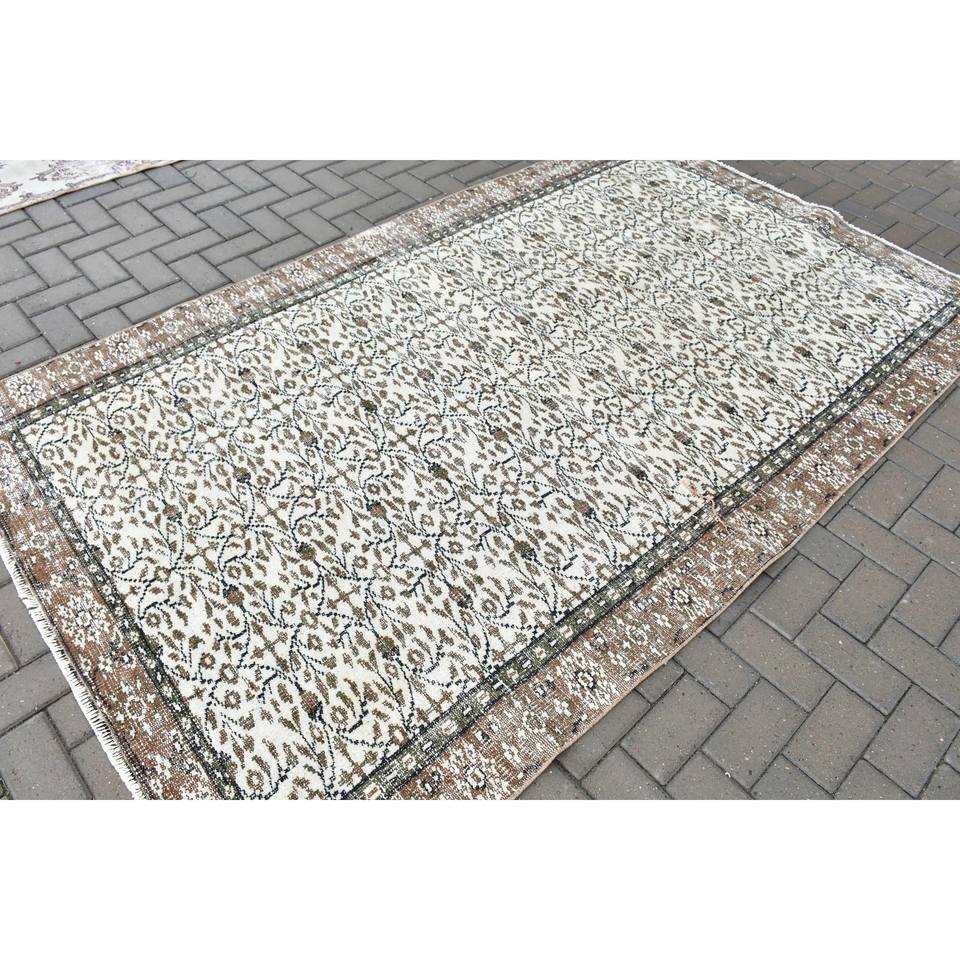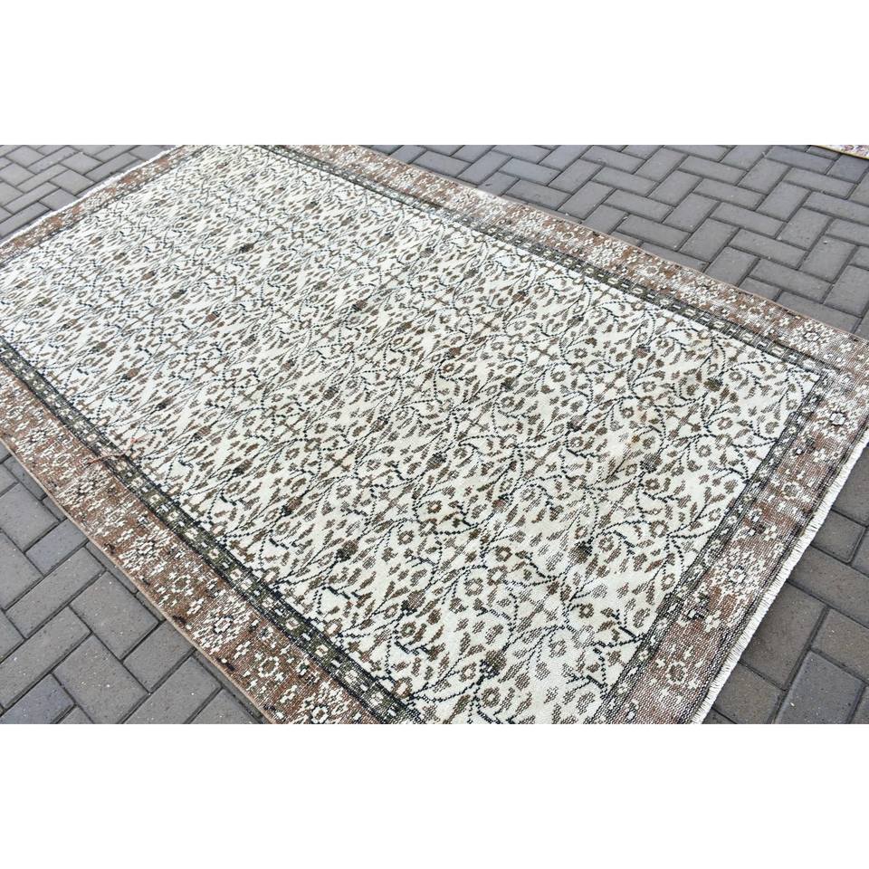 Tapis de 5,1 x 8,5 pieds, tapis turc vintage, tapis à bordures blanches et brunes