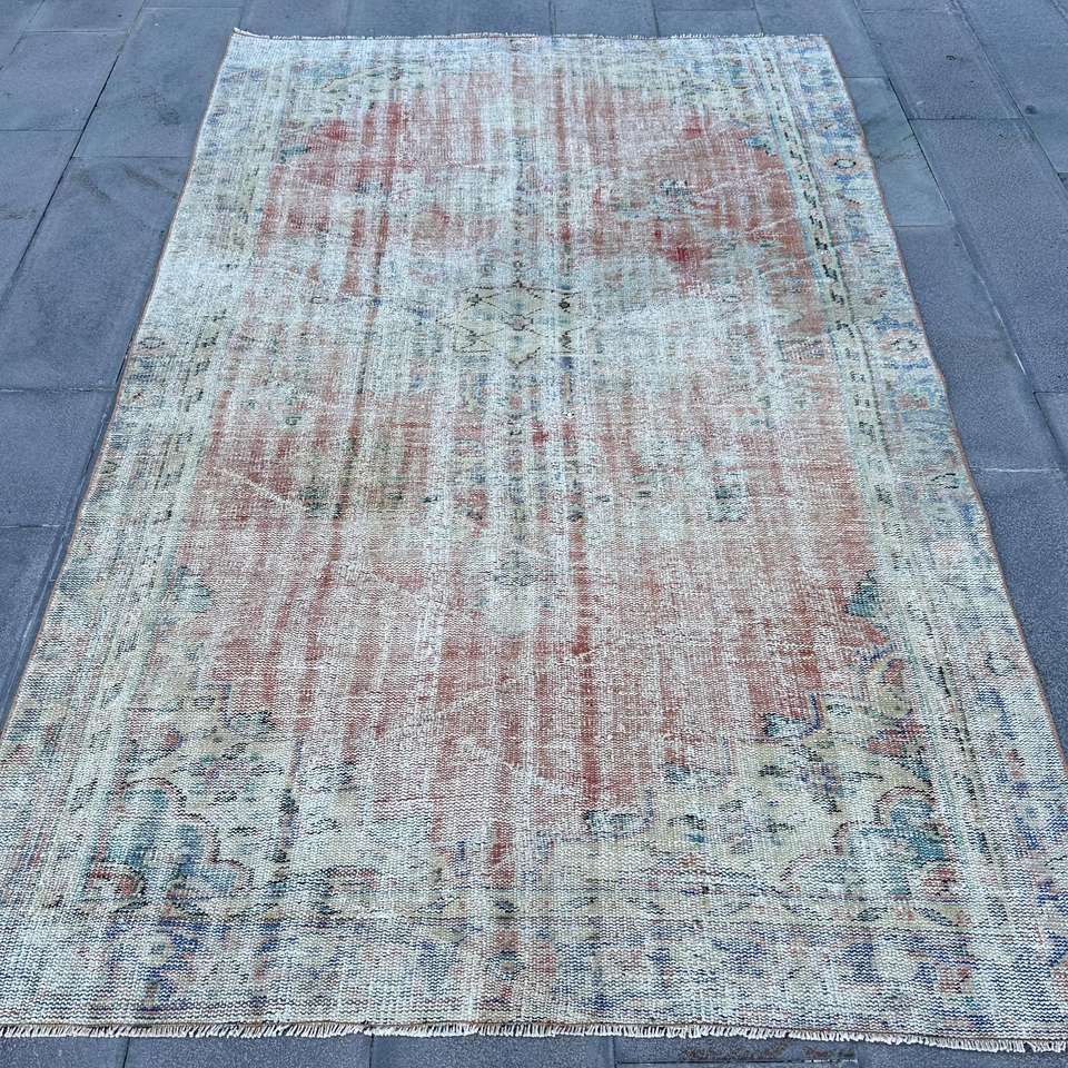Tapis turc 5,2 x 8,7 pieds, tapis persan vintage rouge en laine