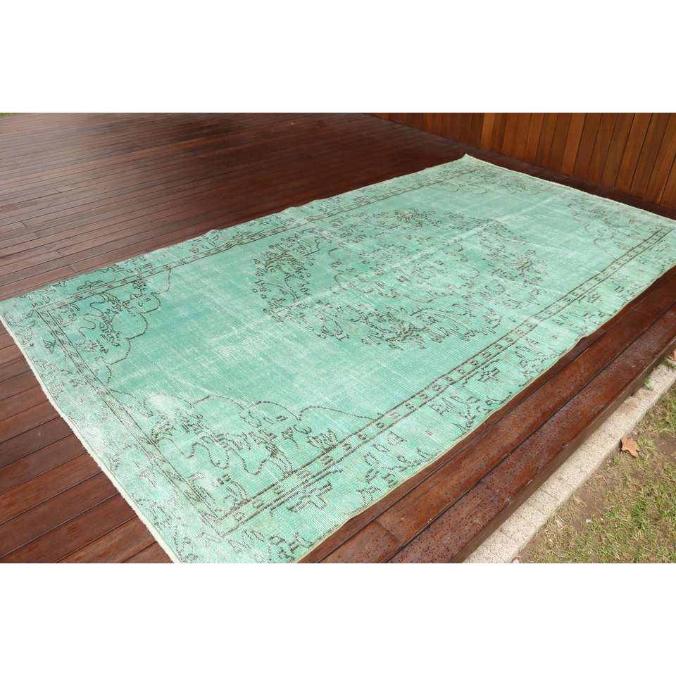 Tapis turc vintage 5,2 x 9,5 pieds, tapis oriental en laine vert et noir
