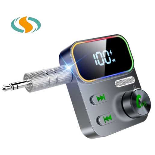 Récepteur audio 5.3 mains libres avec affichage LED RGB, batterie, musique, adaptateur AUX, micro, 2 liaisons universelles, prise jack 3,5 mm, Aeon Fit, garantie 1 an