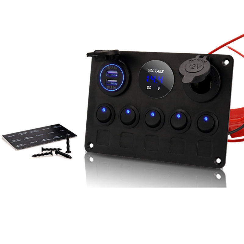 5 + 3 RV Yacht voiture modifié oeil de chat lumière bleue interrupteur de détection de tension double USB source de charge rapide siège mère