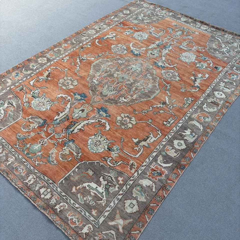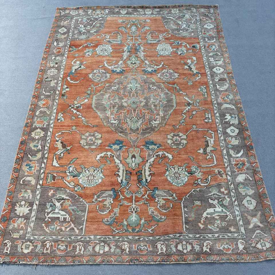 Tapis de 5,4 x 8 pieds, tapis turc vintage, tapis persan en laine rouge