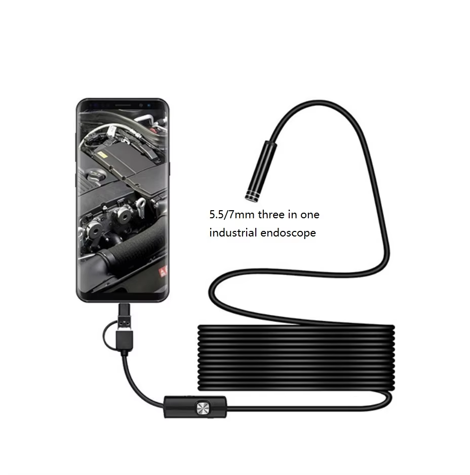 Pipeline d'endoscope industriel 5.5/7mm trois en un, test de moteur de climatisation automobile, endoscope de téléphone portable