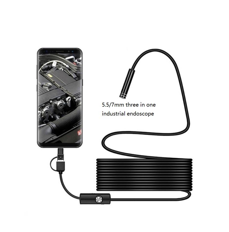 Endoscope industriel trois en un 5,5/7 mm, pour pipeline, climatisation automobile, test de moteur, endoscope pour téléphone portable