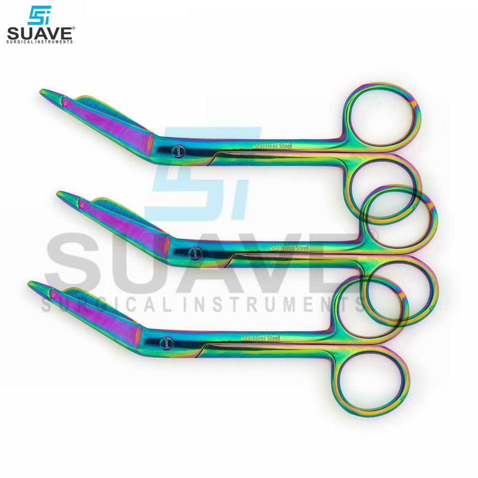 Ciseaux à bandage chirurgical à lame tranchante multicolore en acier inoxydable de 5.5 pouces par SUAVE SURGICAL INSTRUMENTS
