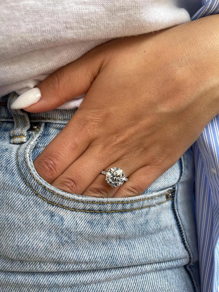 Bague de fiançailles en diamant de laboratoire de 5,50 carats, taille ronde, F VVS2 VVS1, pierres latérales pavées et halo caché, certifiée IGI, or blanc 18 carats