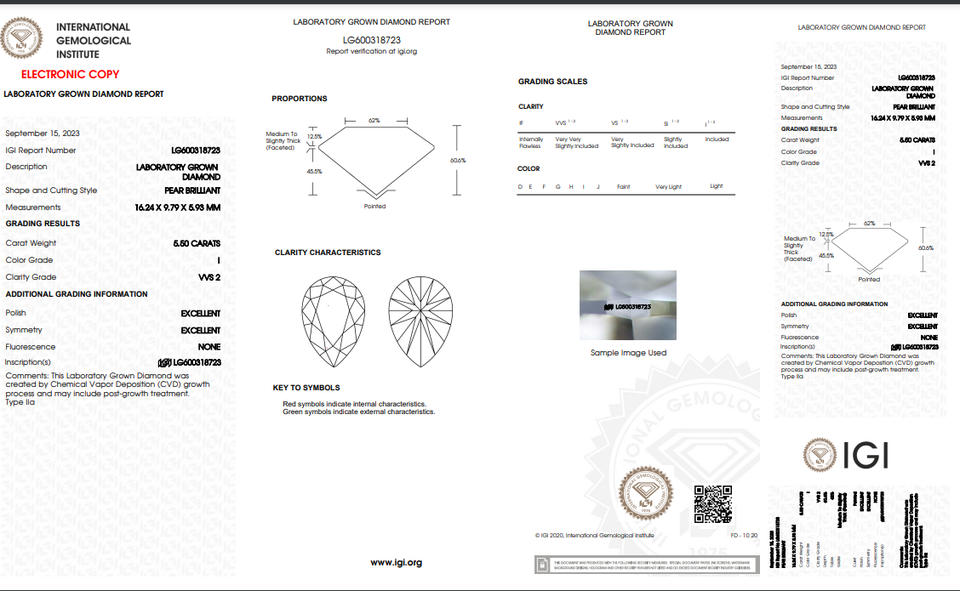 Diamant de laboratoire 5.50 ct coupé en poire certifié IGI I Color VVS2 Clarity Lab-Stone