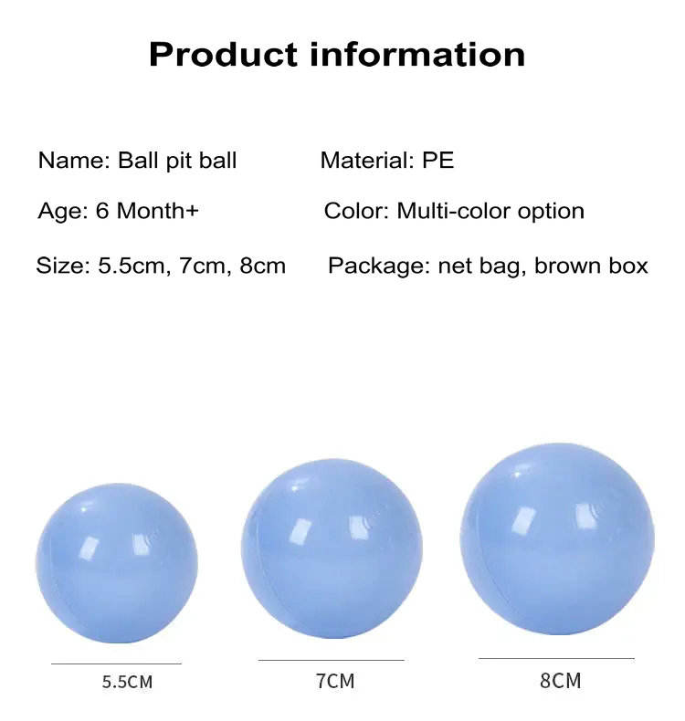 Balles de fosse à billes étanches PE sans BPA, 5.5cm, 7cm, 8cm