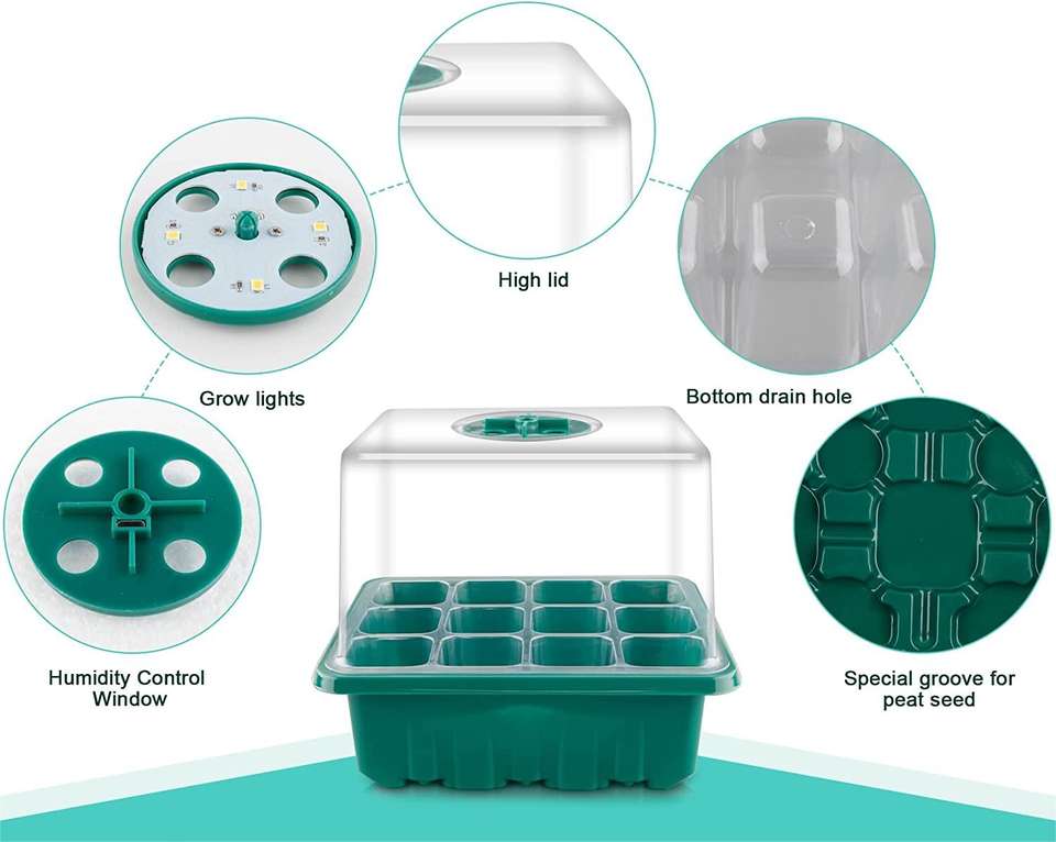 Drainage réglable réutilisable de 5.5cm, 60 graines de cellules avec des lampes de croissance respirantes plateau de semis de plantes boîte de démarrage pour serre