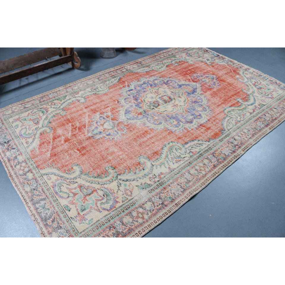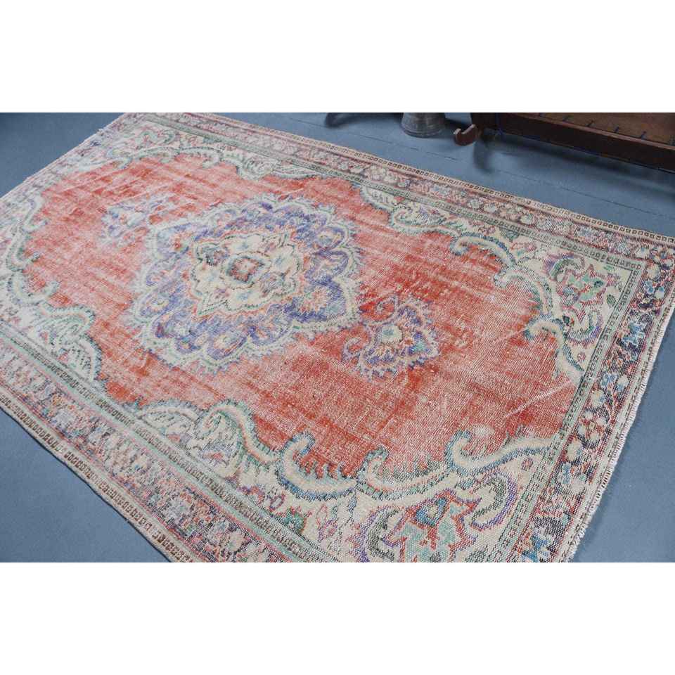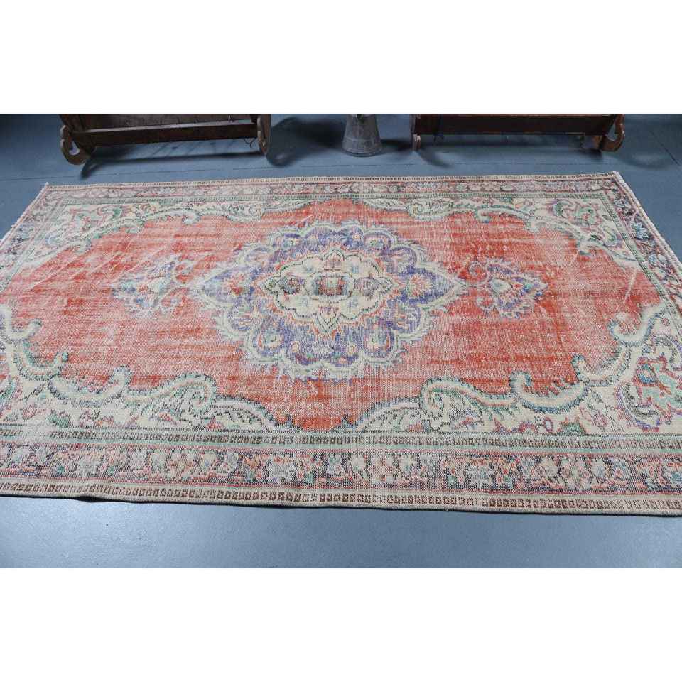 Grand tapis vintage en laine 5,5x9 pieds, patchwork rouge, tapis turc avec envers en latex écologique