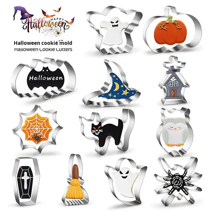 5/6/7/12 pièces fantôme chauve-souris citrouille sorcière chapeau conception acier inoxydable Biscuit moules Halloween emporte-pièces