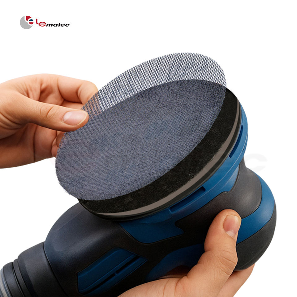 Disques de ponçage à filet anti-obstruction de 5 "6" Papier de verre à boucle de crochet en maille sans poussière pour la finition automatique du bois Taiwan Lematec Made