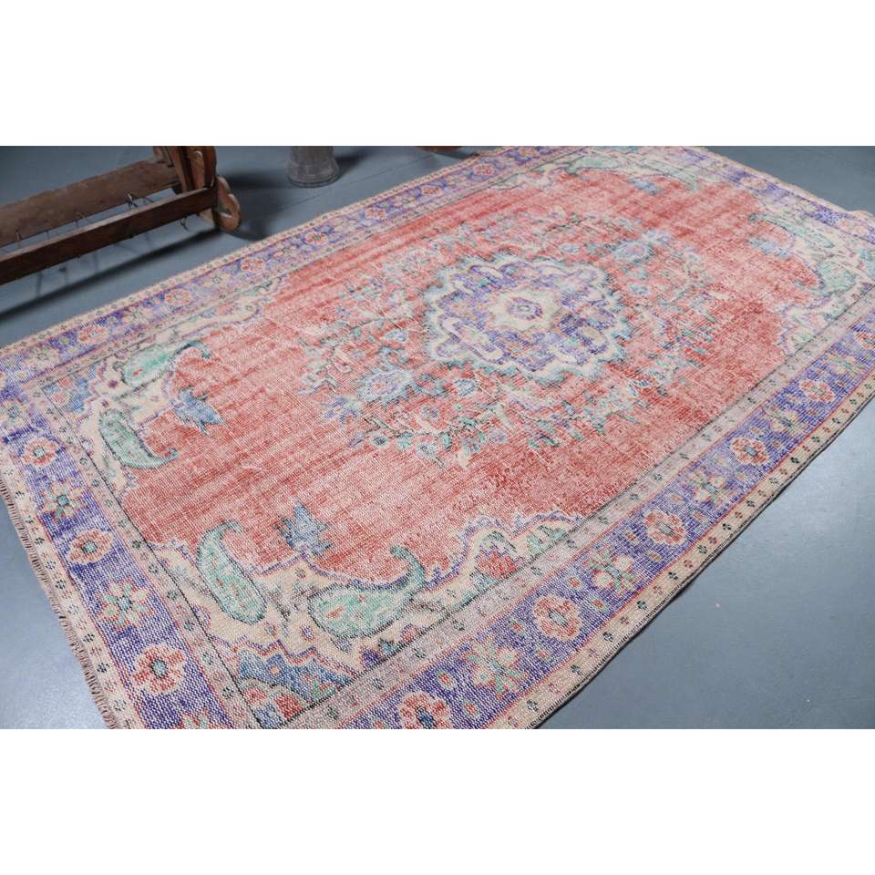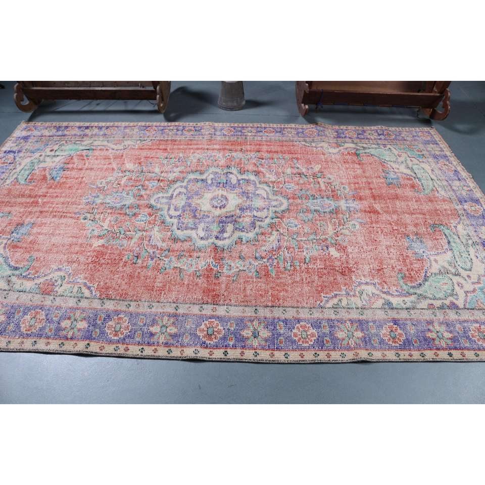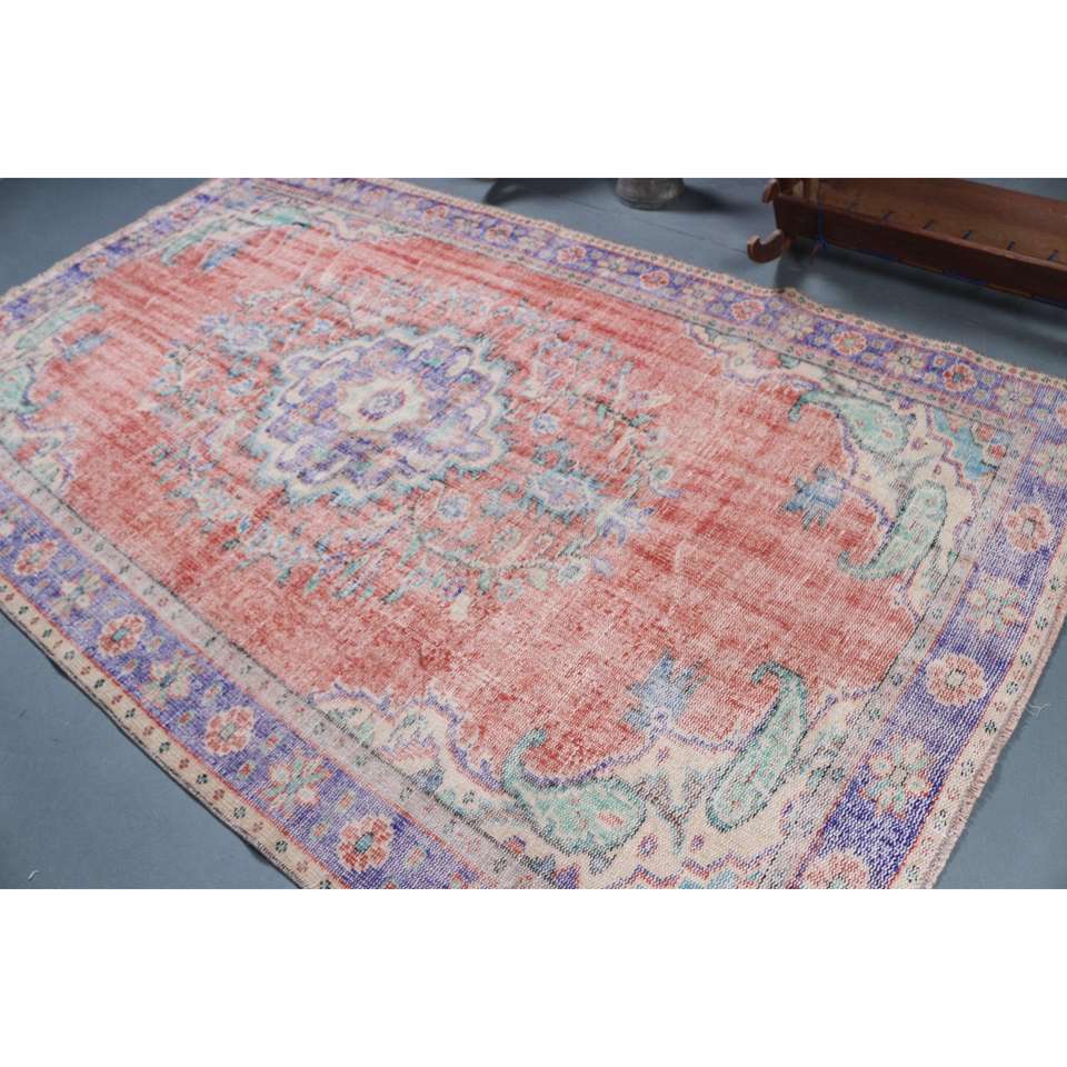 Tapis turc 5,6 x 9,4 pieds, tapis en laine vintage à fleurs rouges