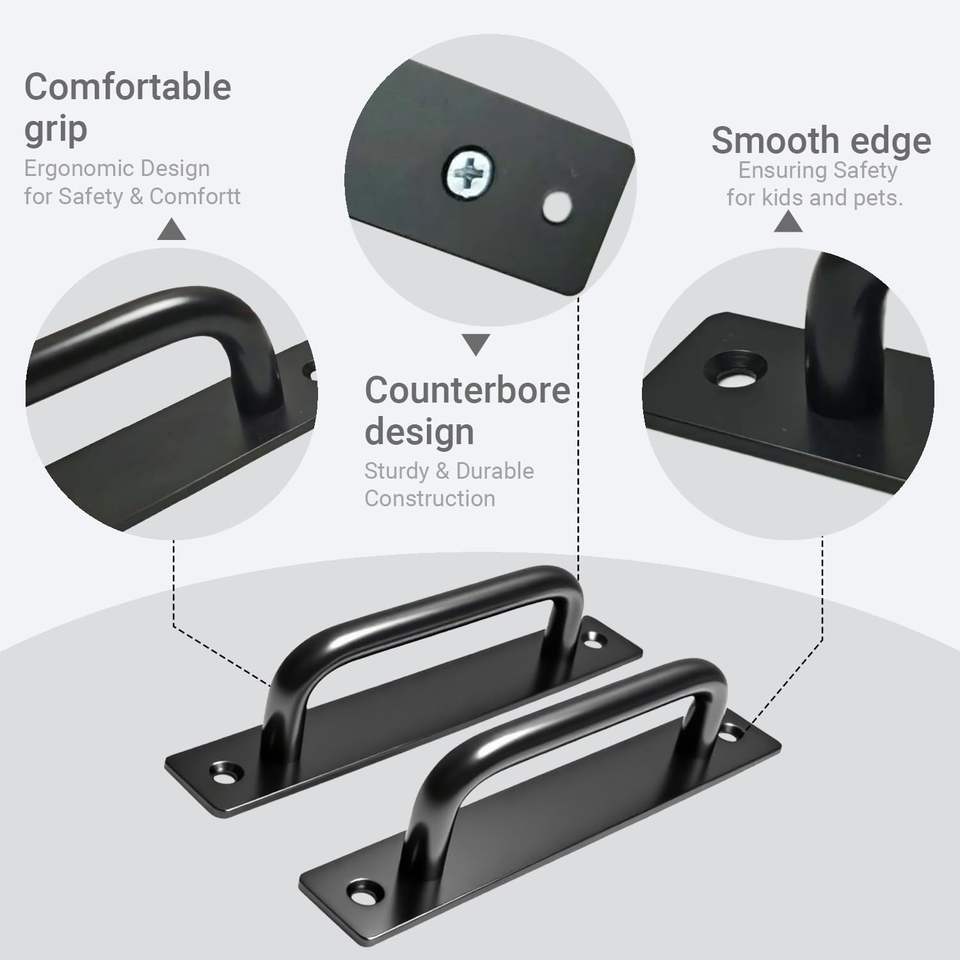 Poignée de porte de grange de 5,8 pouces, poignée de porte de qualité supérieure, robuste, noire, poignées de porte coulissantes pour armoire de cuisine, salle de bain, placard