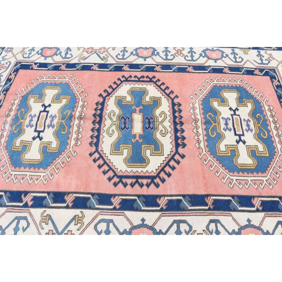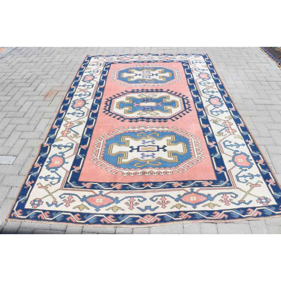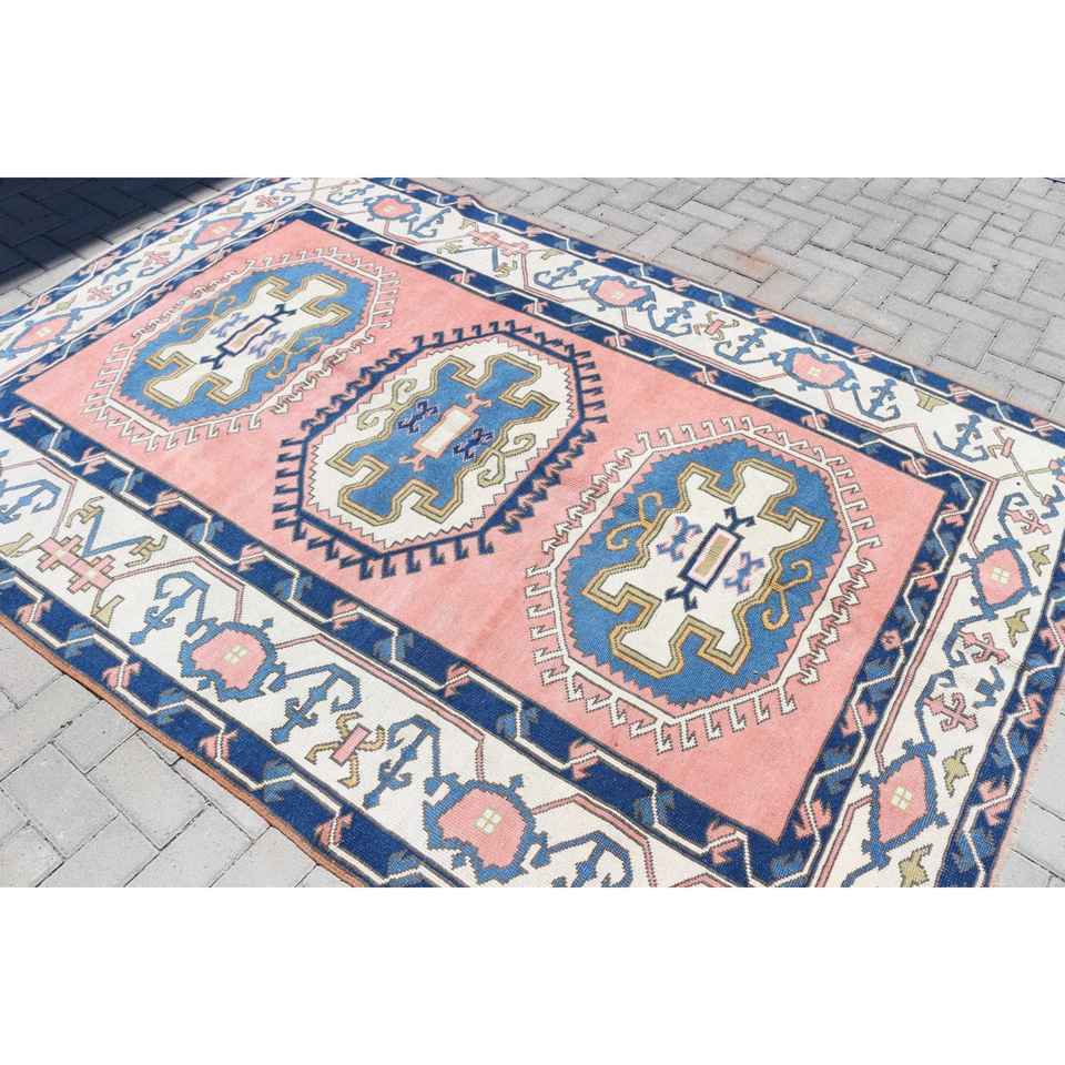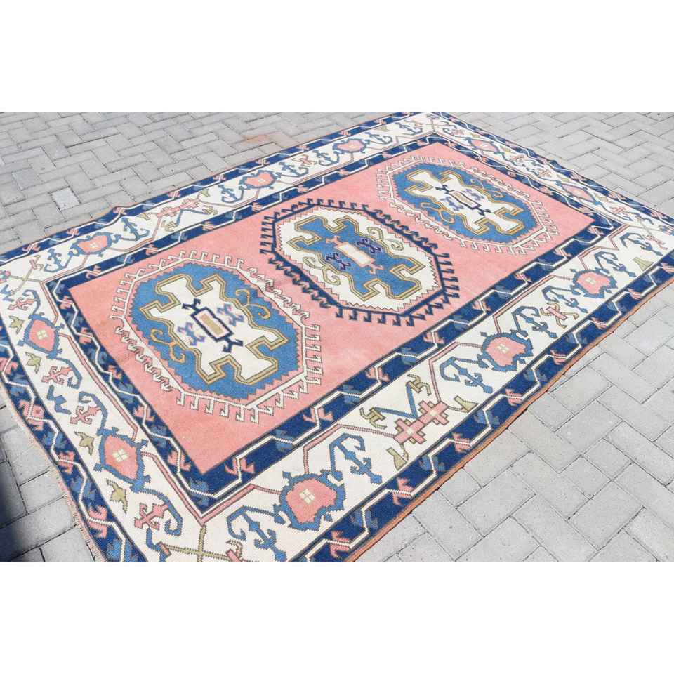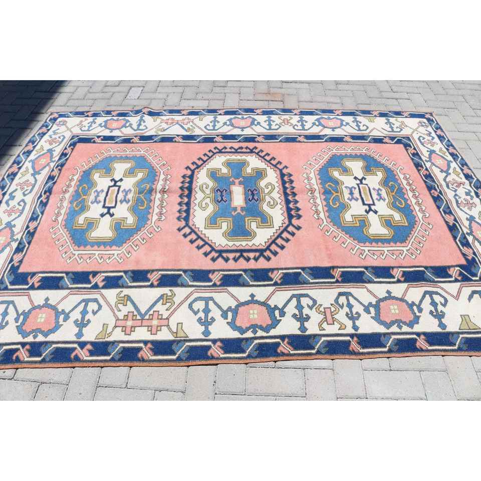 Tapis de 5,8 x 8,3 pieds, grand tapis turc vintage, tapis en laine bleue
