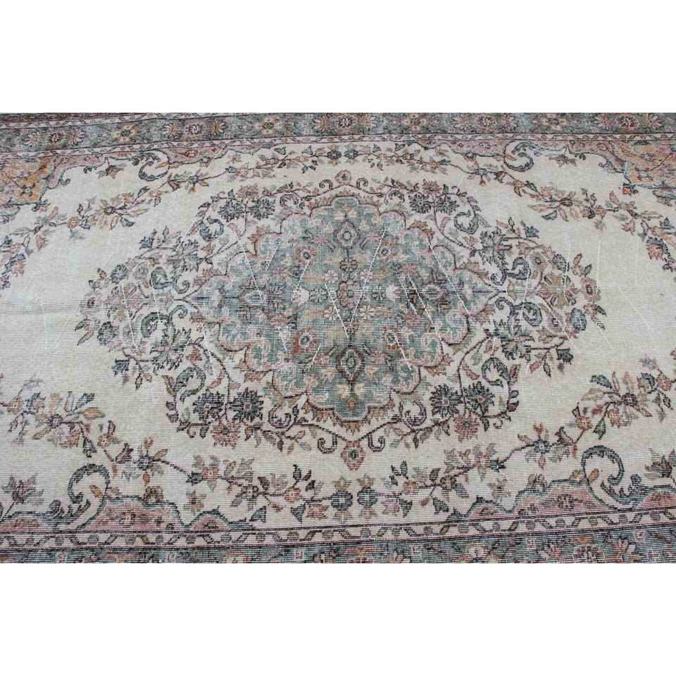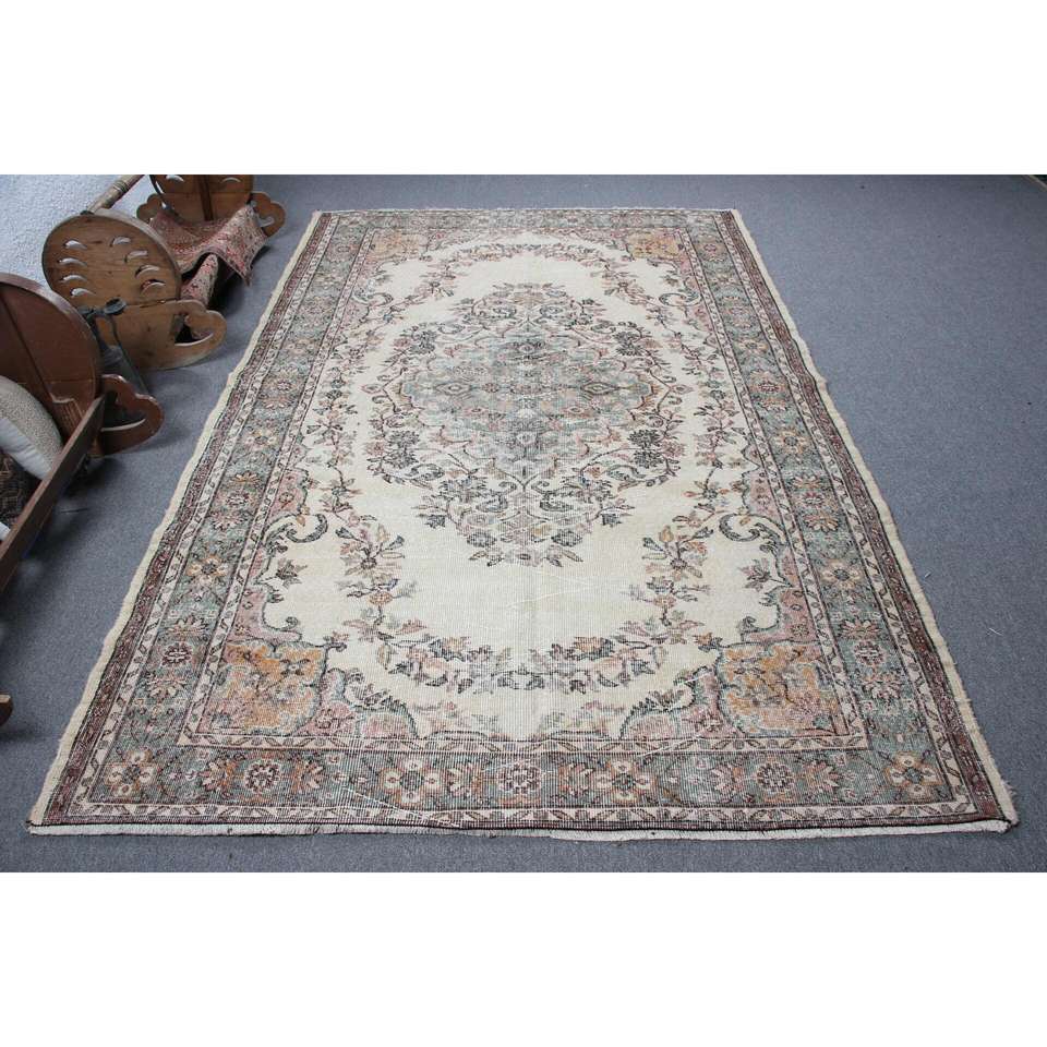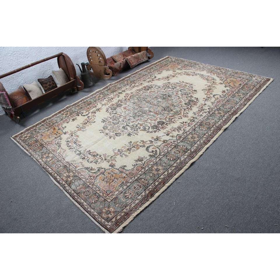 Tapis de 5,8 x 9,3 pieds, tapis turc vintage, tapis Ikat marron vert