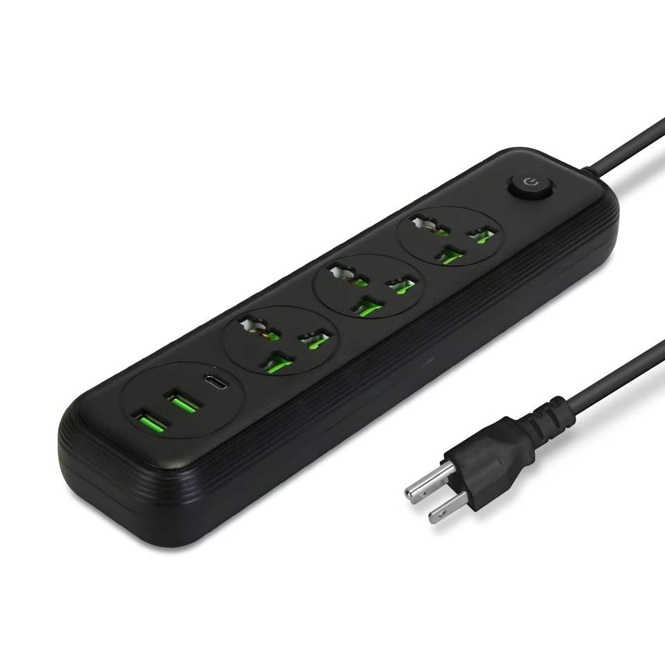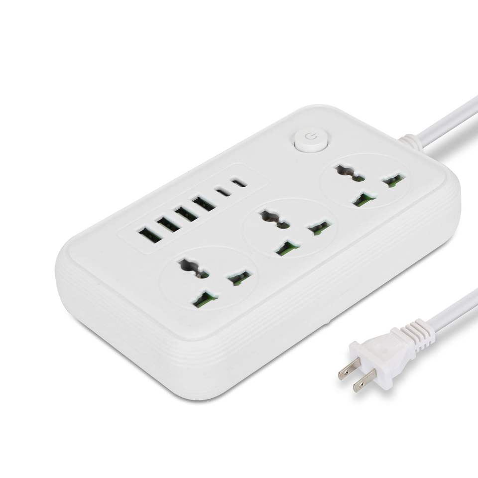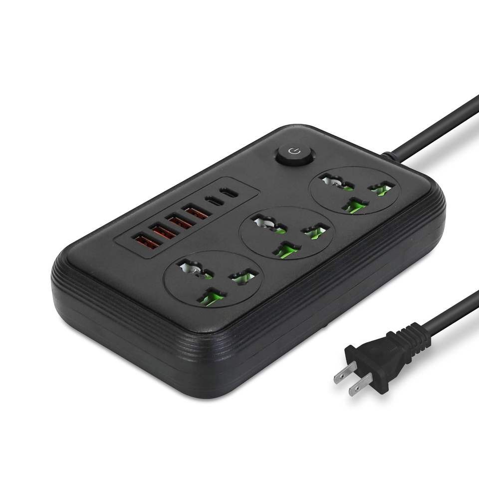 Multiprise murale de 1,8 m avec 3 prises CA, 4 ports USB-A et 2 ports USB-C, 2500 W, rallonge de prise murale pour la maison