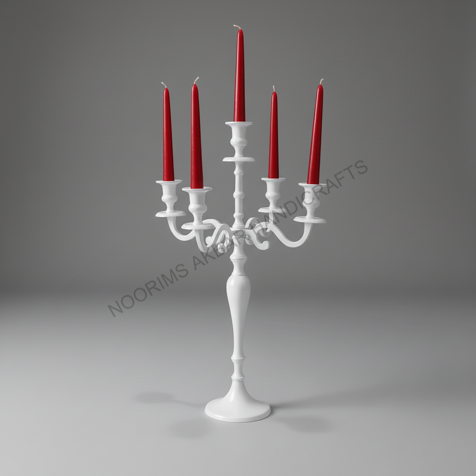 5 Arm White Aluminium Candelabra Centerpiece Handmade Tall Wedding Home Decoration Modern European Style Customized Color Candle