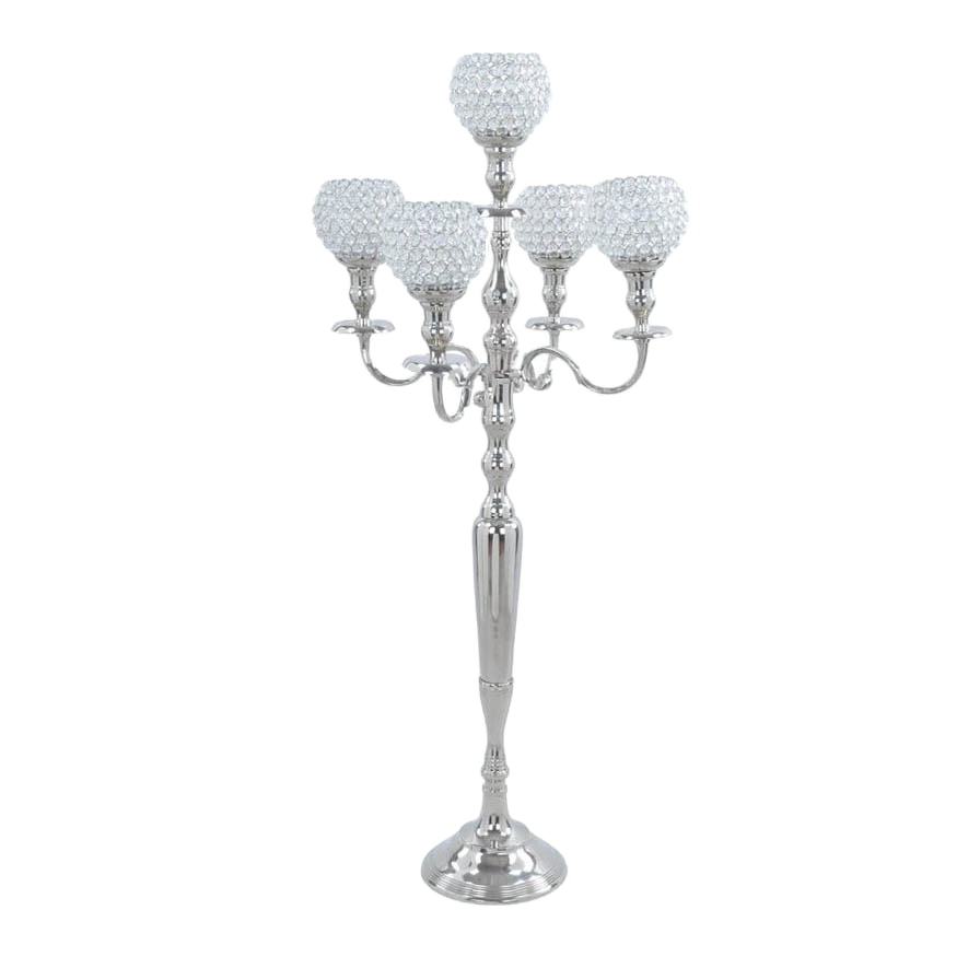 Boule perlée en cristal à 5 bras décoratif en aluminium métal nickelé finition bougeoir à la main pour la décoration de Restaurant
