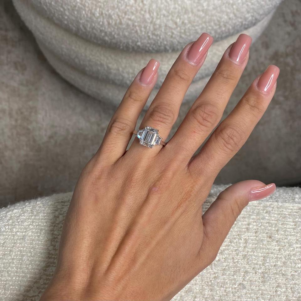 Bague de fiançailles à trois pierres en diamant de laboratoire taille émeraude 5 carats, pierre trapézoïdale, or blanc 14 carats, luxueuse bague trilogie en diamant