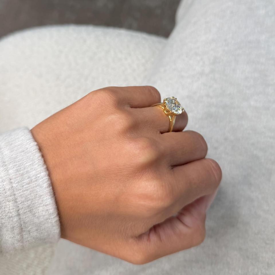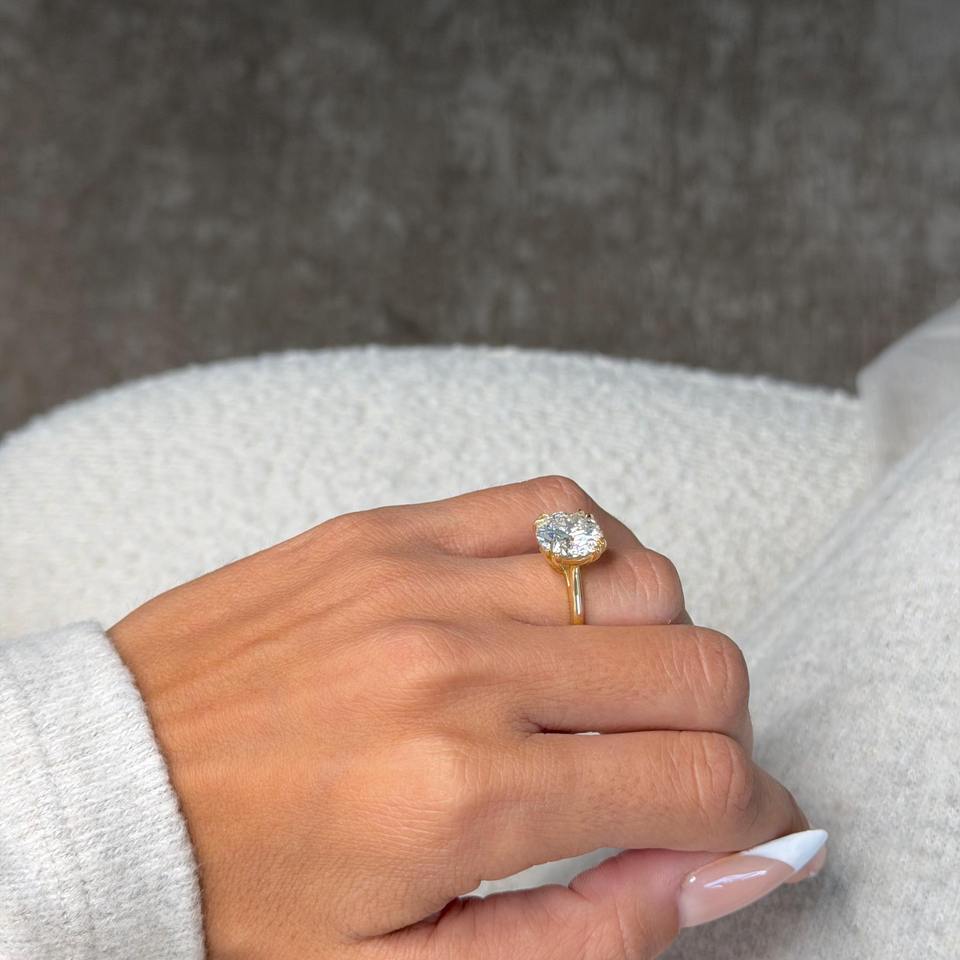 Bague de fiançailles solitaire en diamant de laboratoire rond de 5,00 carats, sertie de griffes doubles cathédrale, or jaune 18 carats, certifiée GI