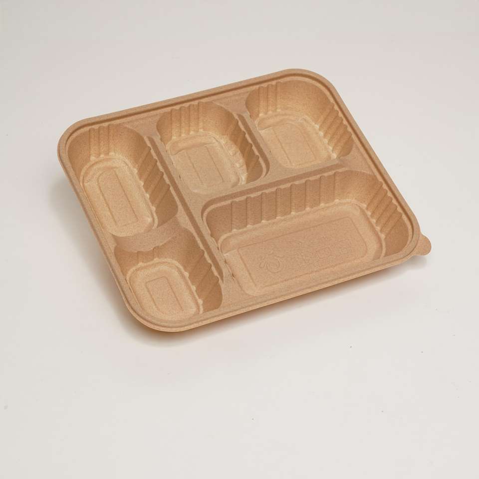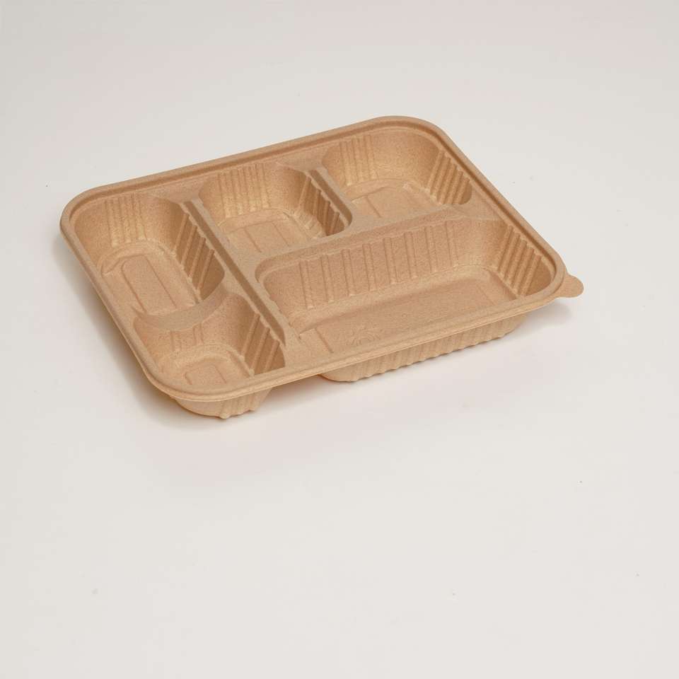 Barquette alimentaire jetable biodégradable à 5 compartiments, sans BPA, compatible micro-ondes, avec couvercle anti-fuite, pour repas en avion et préparation de repas
