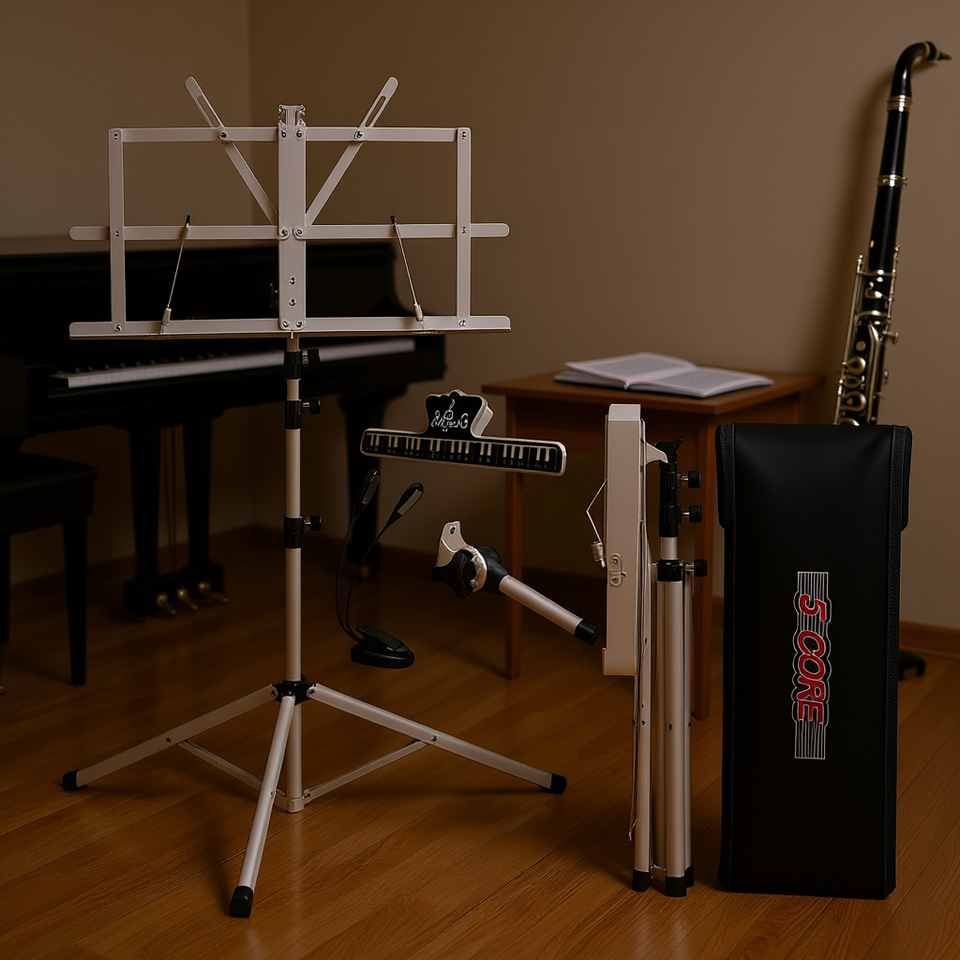 Support de partitions pliable à 5 brins, trépied réglable en aluminium, portable, avec étui de transport