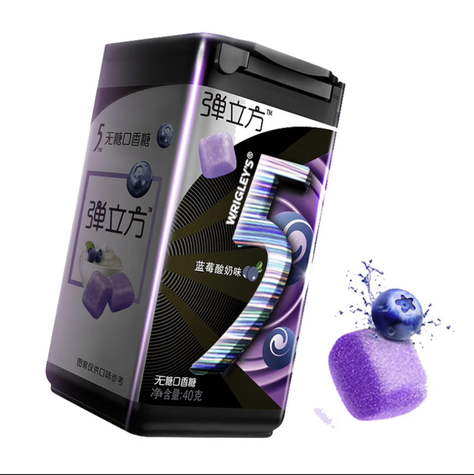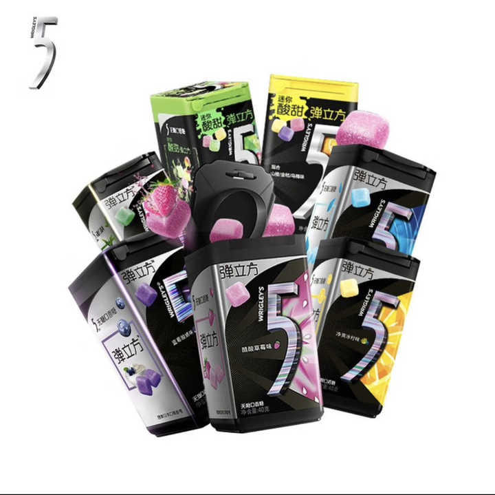 5 Gommes à mâcher aromatisées aux fruits assortis, menthe, fraise, citron glacé