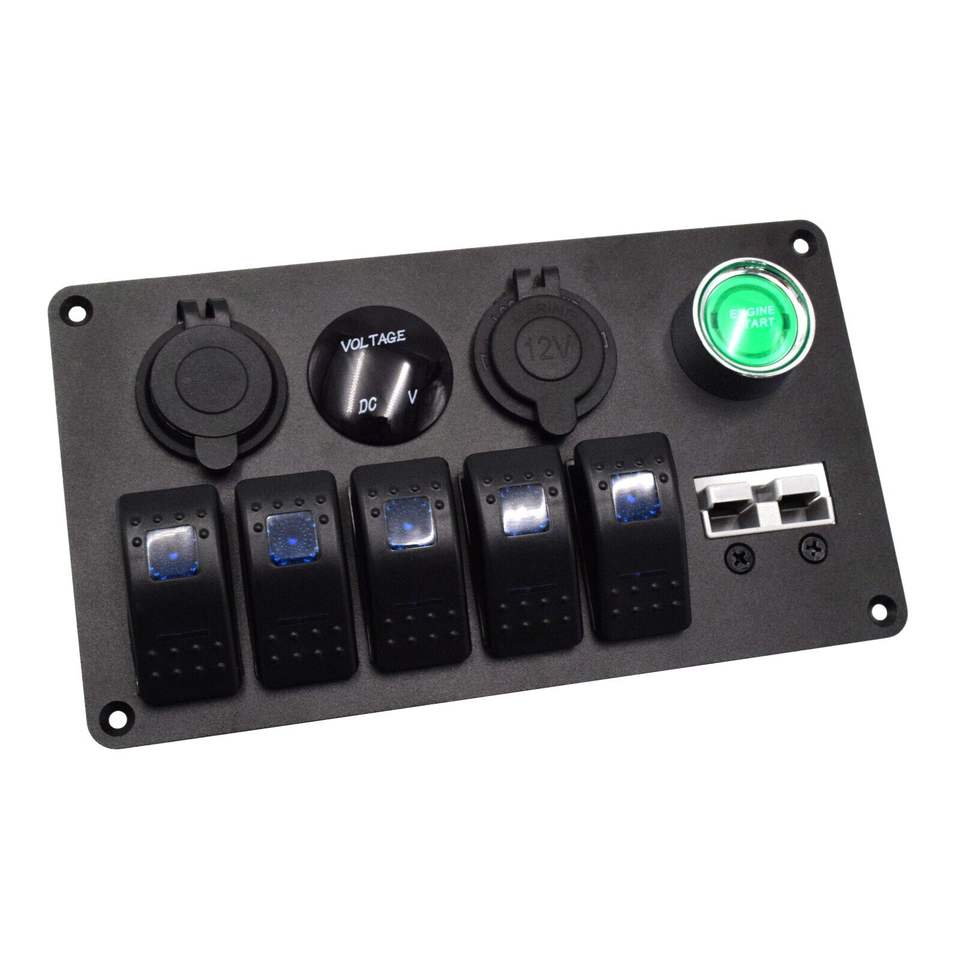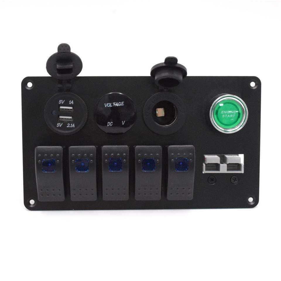 Panneau de commutation 5 gangs avec klaxon de réinitialisation interrupteur à bascule marche-arrêt démarrage du moteur Andersn chargeur USB Volt 12V panneau de commutation pour remorque de voiture
