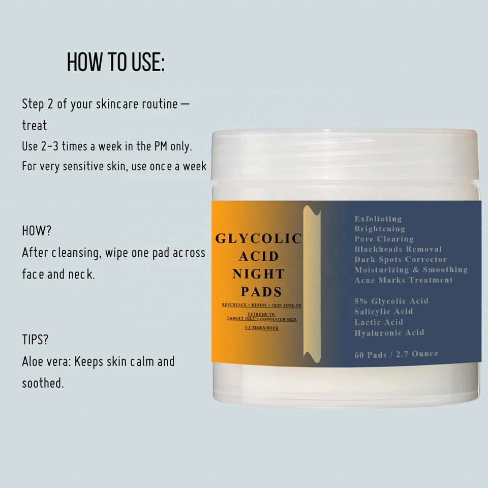 Product Name:5% Glycolic Acid AHA Peel Face Wipes pads