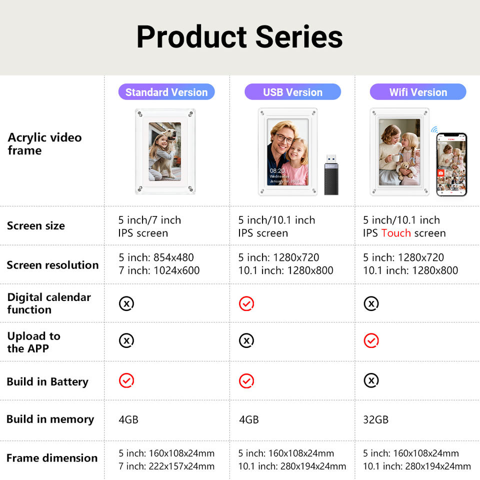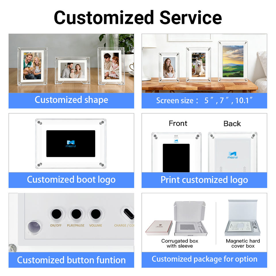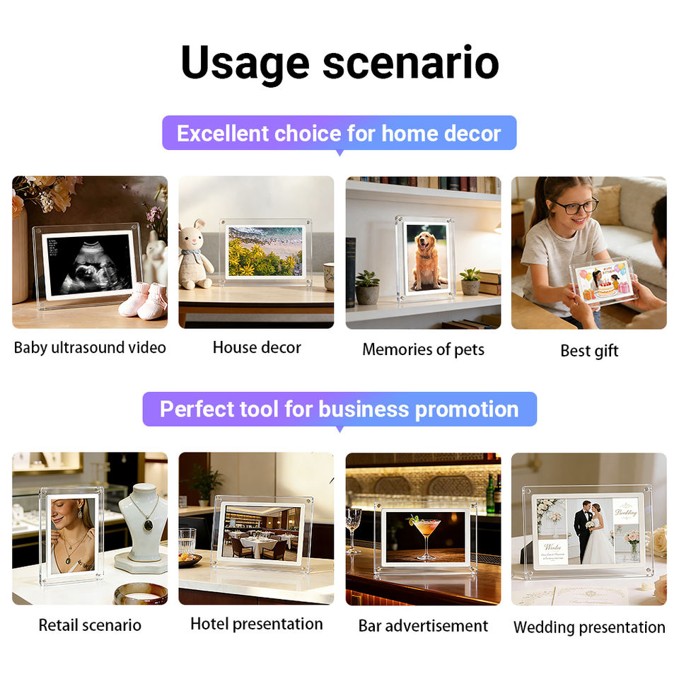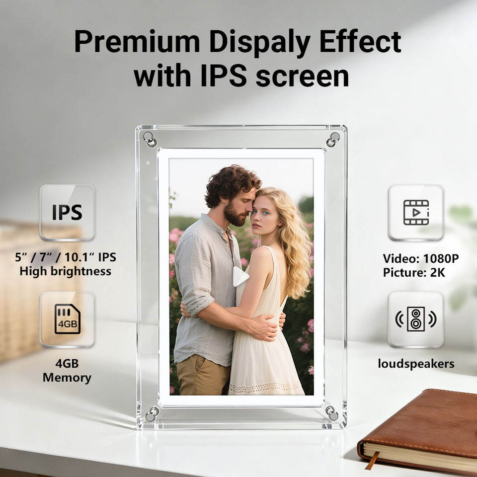 Cadre photo numérique avec écran IPS de 5/7/10 pouces, 4 Go de mémoire, écran TFT LCD IPS, cadre photo numérique vidéo