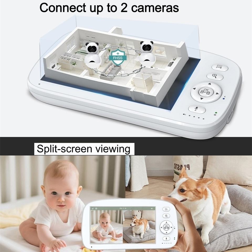 5 pouces 720p ABM501 Pan Tilt lecteur de musique Babyphone Audio bidirectionnel Vision nocturne nounou Bebe caméra de Surveillance vidéo bébé moniteur