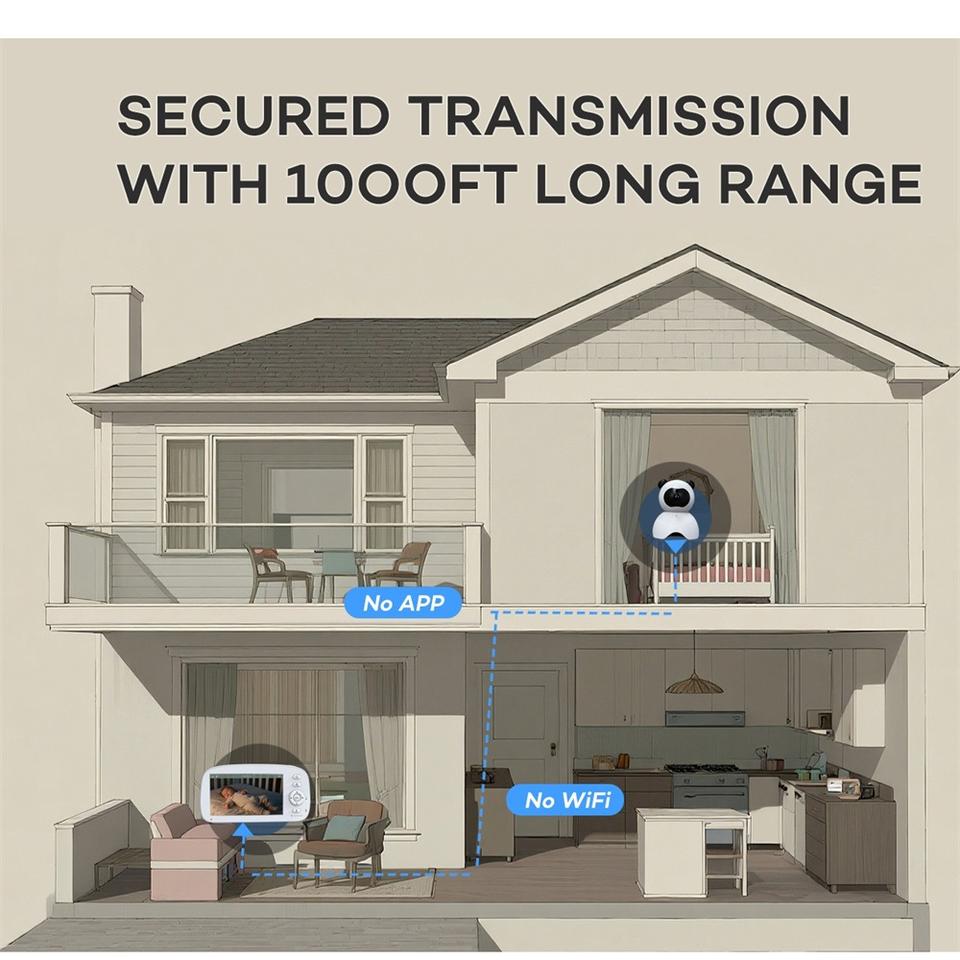 PAN-TILT, Vision nocturne, Audio bidirectionnel, Détection sonore, Détection de mouvement, Rappel de l'alimentation, Berceuses, Berceuses intégrées, Affichage de la température, Affichage en écran partagéUsages spéciaux