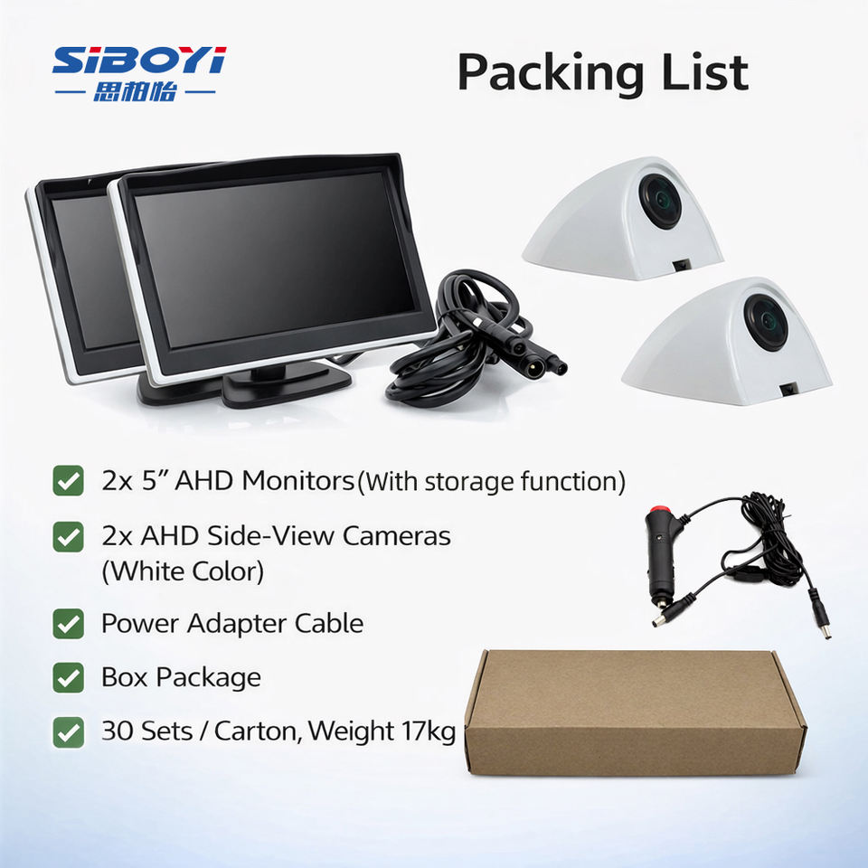 Système de surveillance par caméra 5 pouces AHD 720P avec vision nocturne Starlight, caméra d'angle mort gauche/droite, étanche IP68 avec stockage