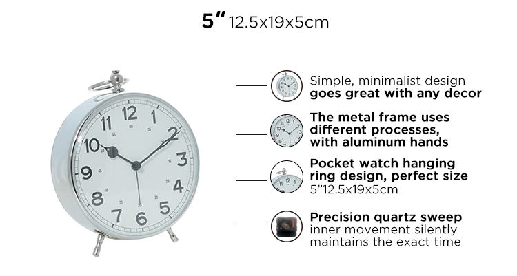 Horloge de bureau et de table rétro vintage, silencieuse, personnalisé, bon marché, en or rose, à la mode, 5 pouces