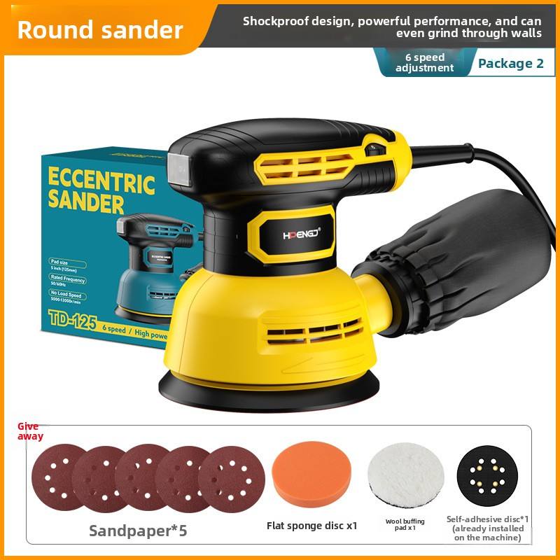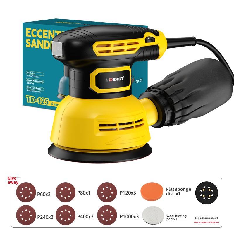 Machine à poncer 5 pouces-jaune-5 feuilles de papier de verre