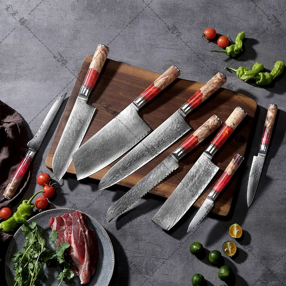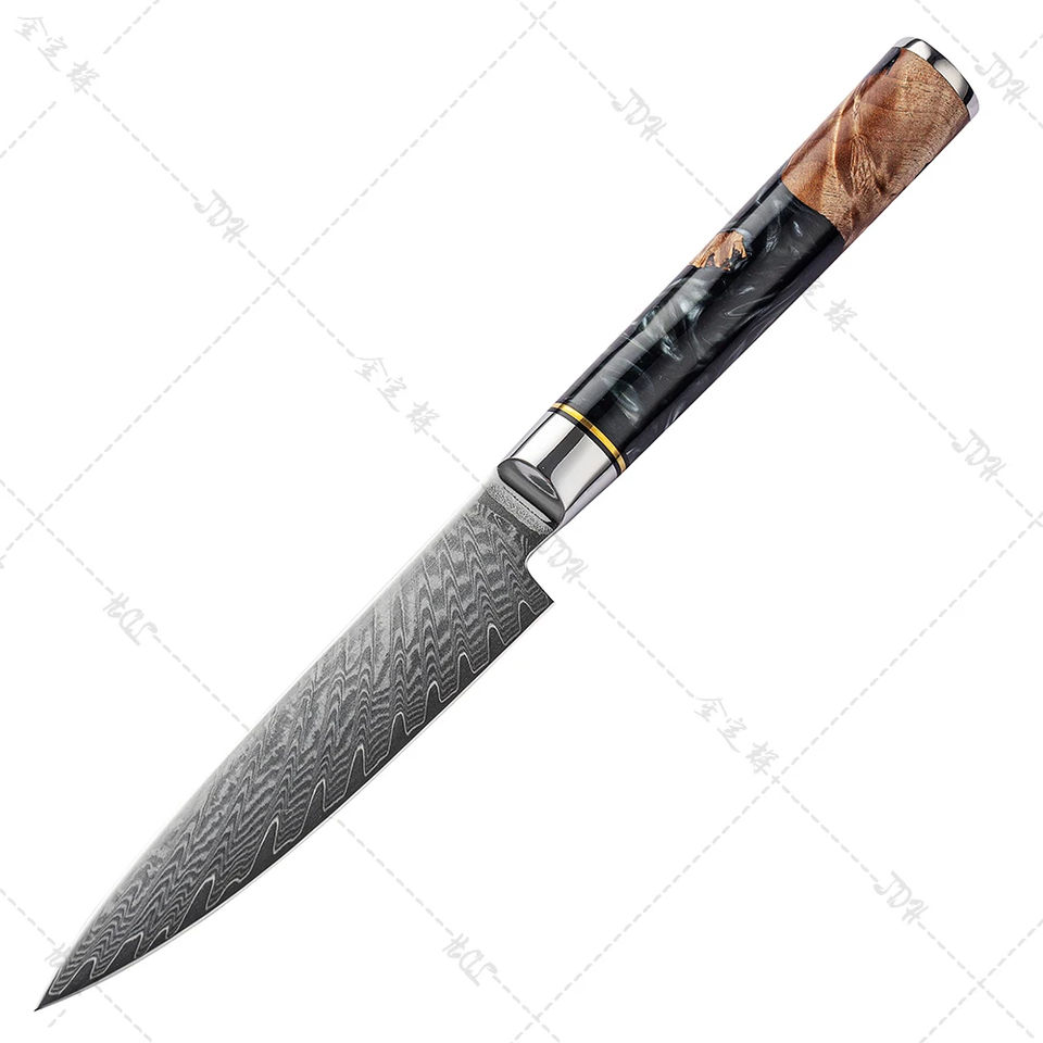 Couteau utilitaire de 5 pouces, couteau de cuisine en acier damas 67 couches avec manche en résine et bois